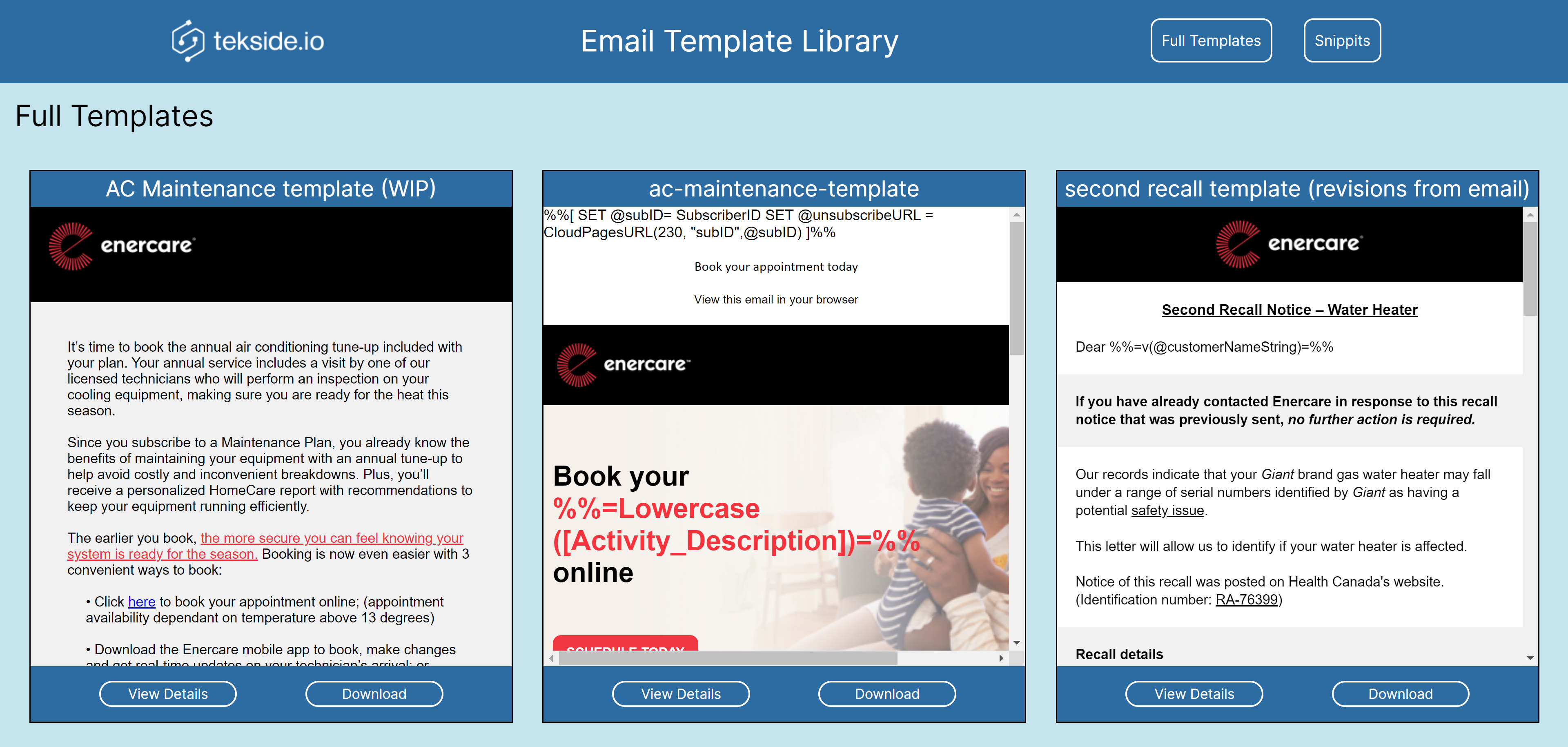 email template library. I hosted an internal site where employee's can upload HTML templates of previous emails so that they can be accessed and reused